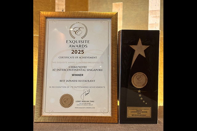 We are thrilled to announce that CHIKUYOTEI at THE INTERCONTINENTAL SINGAPORE has been awarded Best Japanese Restaurant at the Exquisite Awards 2025. This prestigious recognition reflects our unwavering dedication to exquisite cuisine, impeccable service, and the support of our valued guests. We look forward to continuing to deliver unforgettable Japanese dining experiences in the heart.